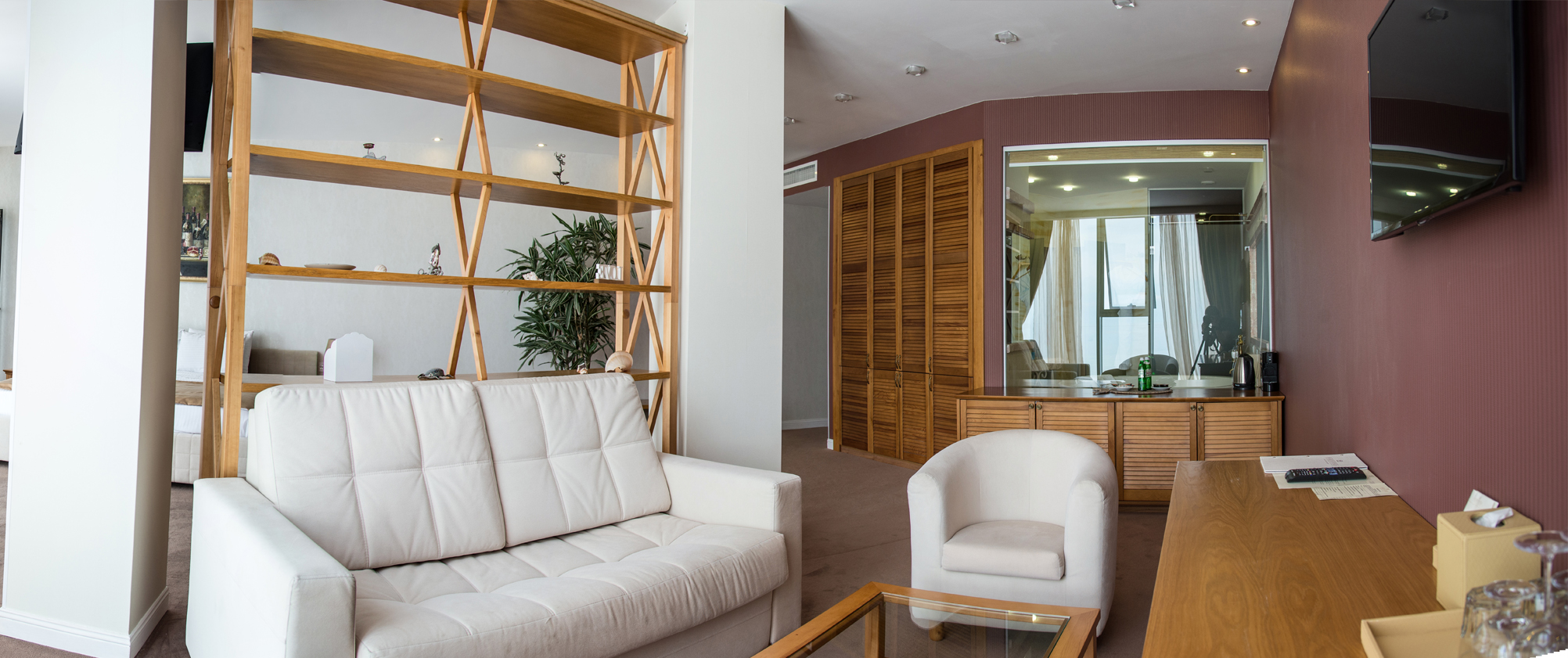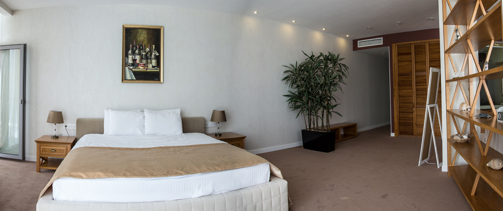 Номери категорії стандарт витримані в м’якій бордово-піщаній гамі, що наповнює простір відчуттям тепла та гармонії. Інтер’єр продуманий так, щоб дарувати комфорт і сприяти повноцінному відпочинку. Для гостей, які навіть під час подорожі поєднують відпочинок із робочими справами, у номері облаштовано зручну робочу зону з письмовим столом і комфортним кріслом.