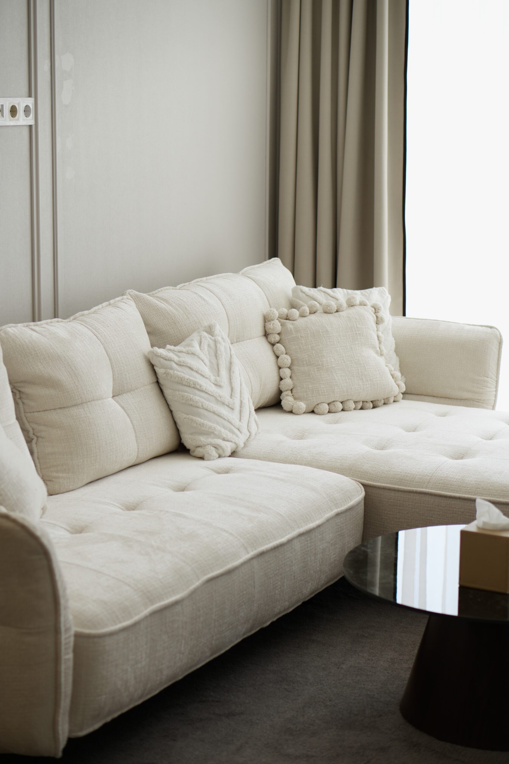 - затишна вітальня з диваном і 65-дюймовим телевізором