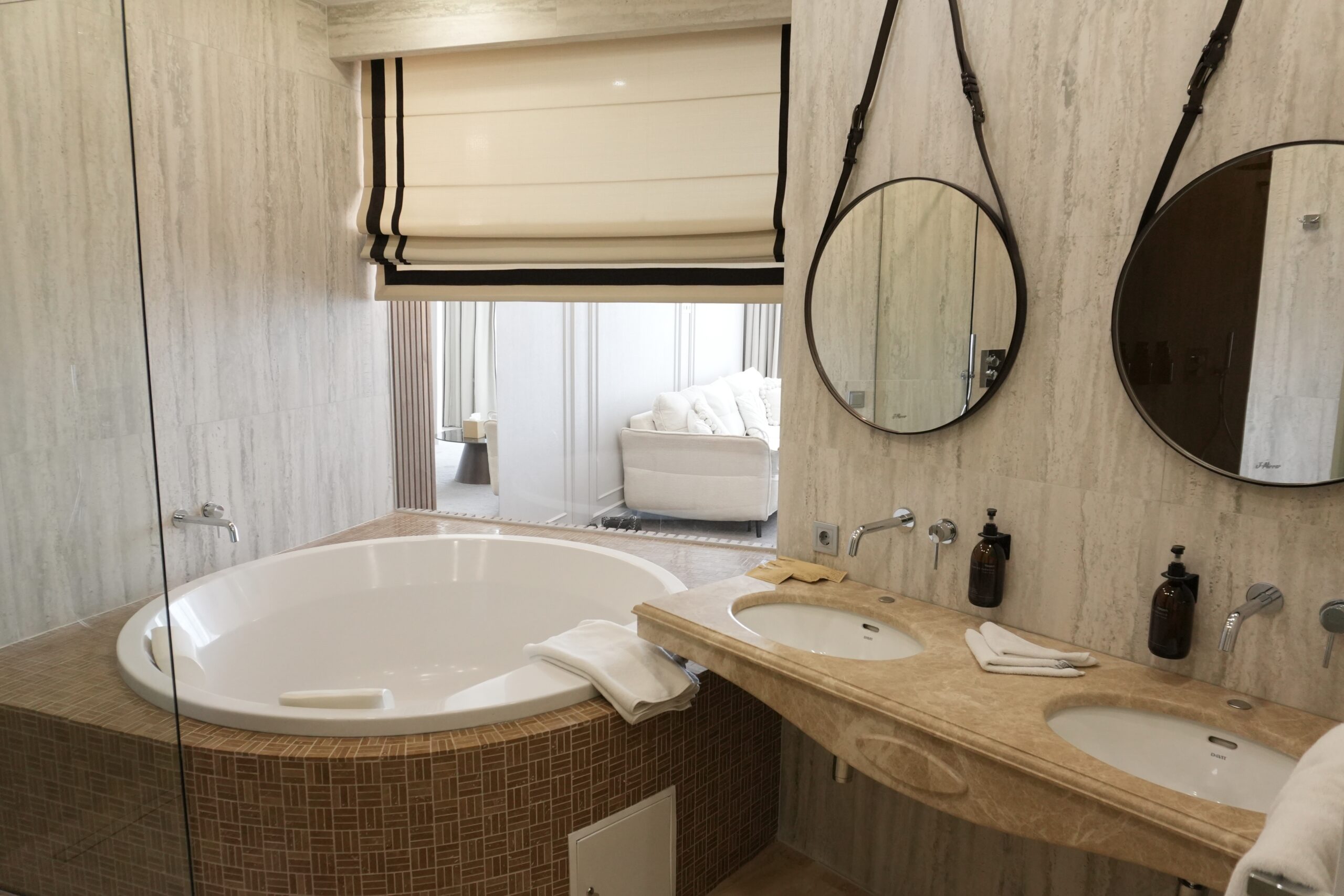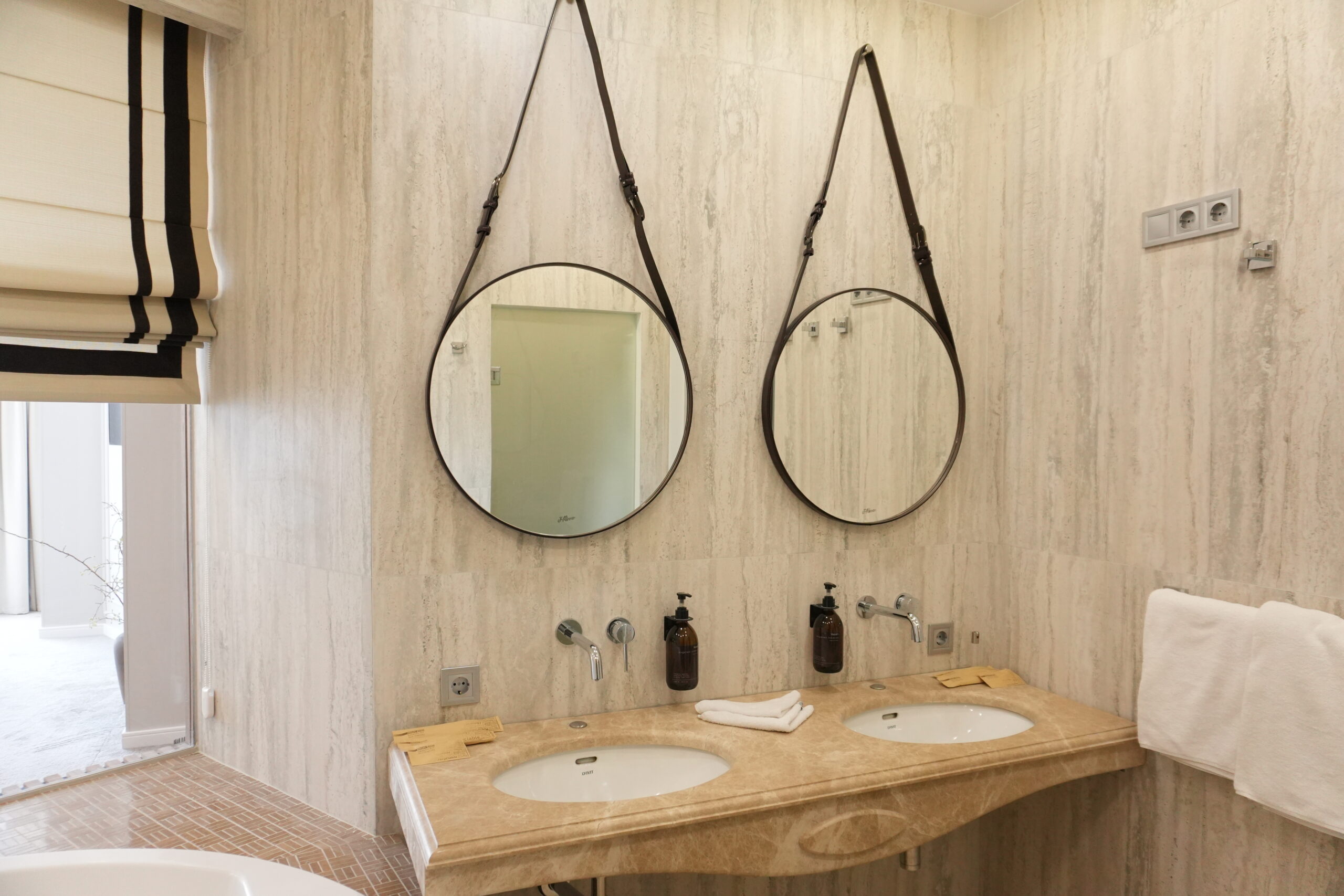 - панорамна ванна кімната з видом на море та широкий вибір міні-парфюмерії українського бренду
