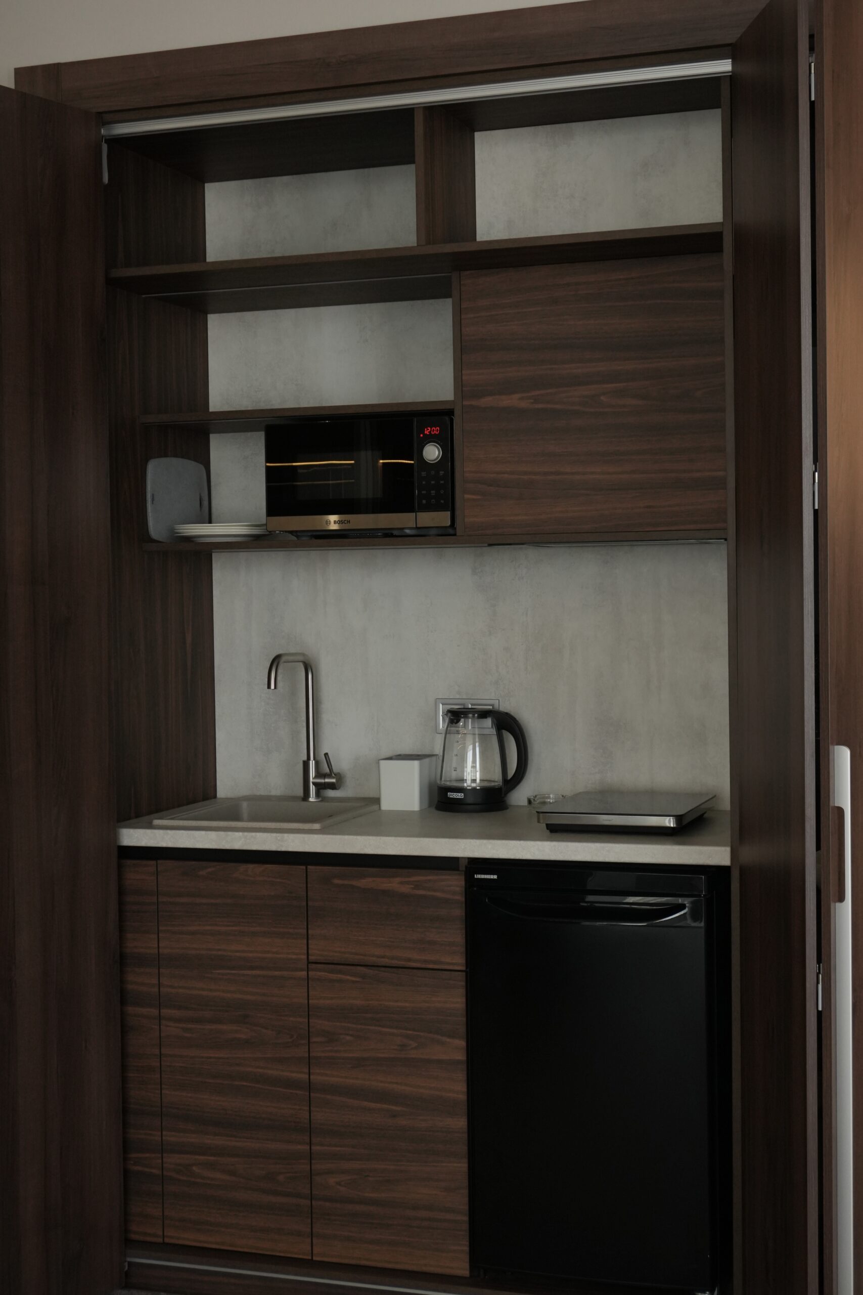 У номері є власна кухня, холодильник із міні-баром, чайник, кавоварка та преміальний набір для приготування гарячих напоїв.
